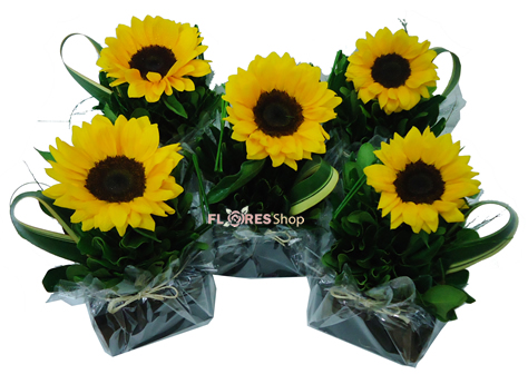 Centrinhos de mesa feitos com Girassóis e folhagens.